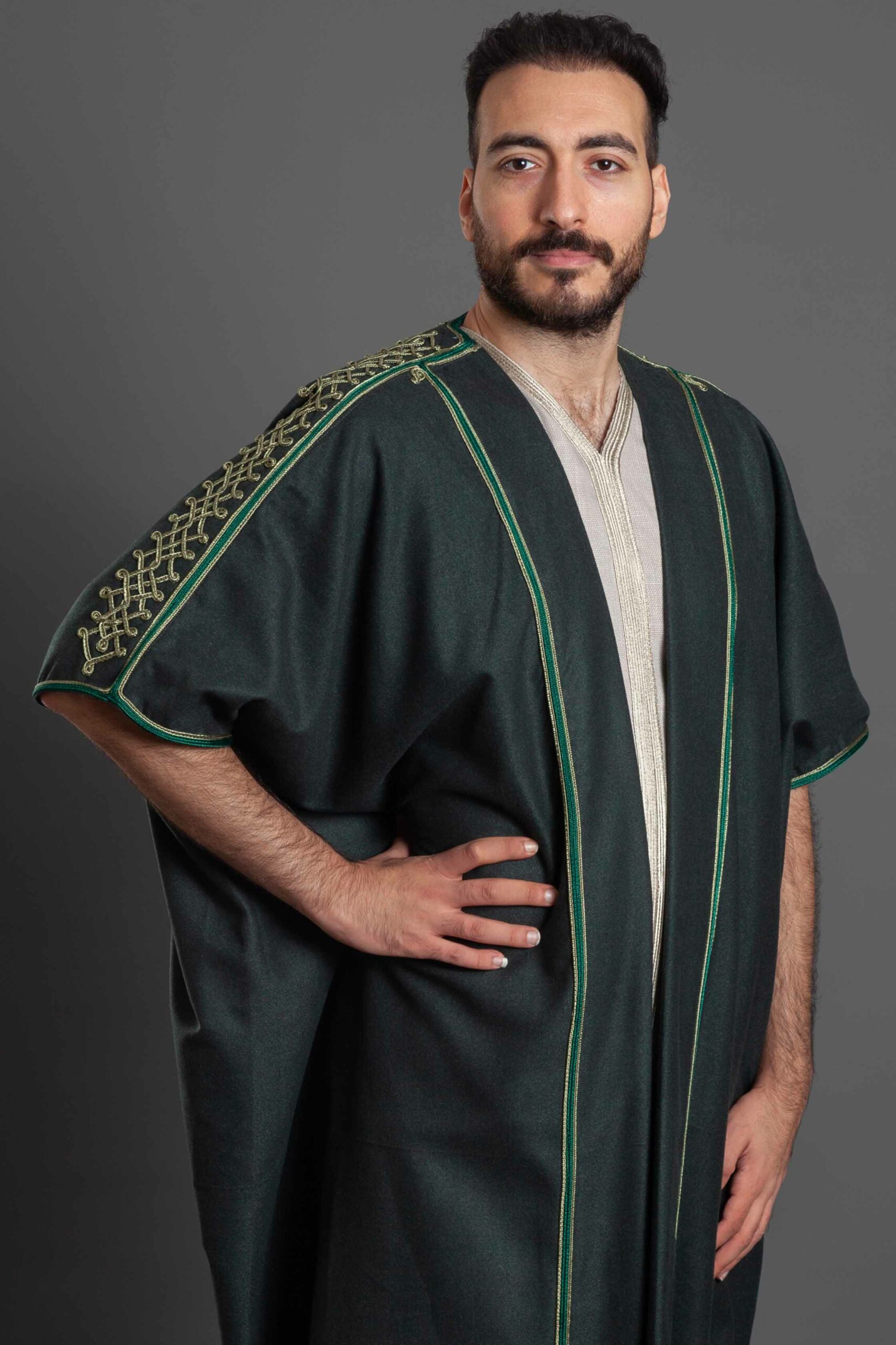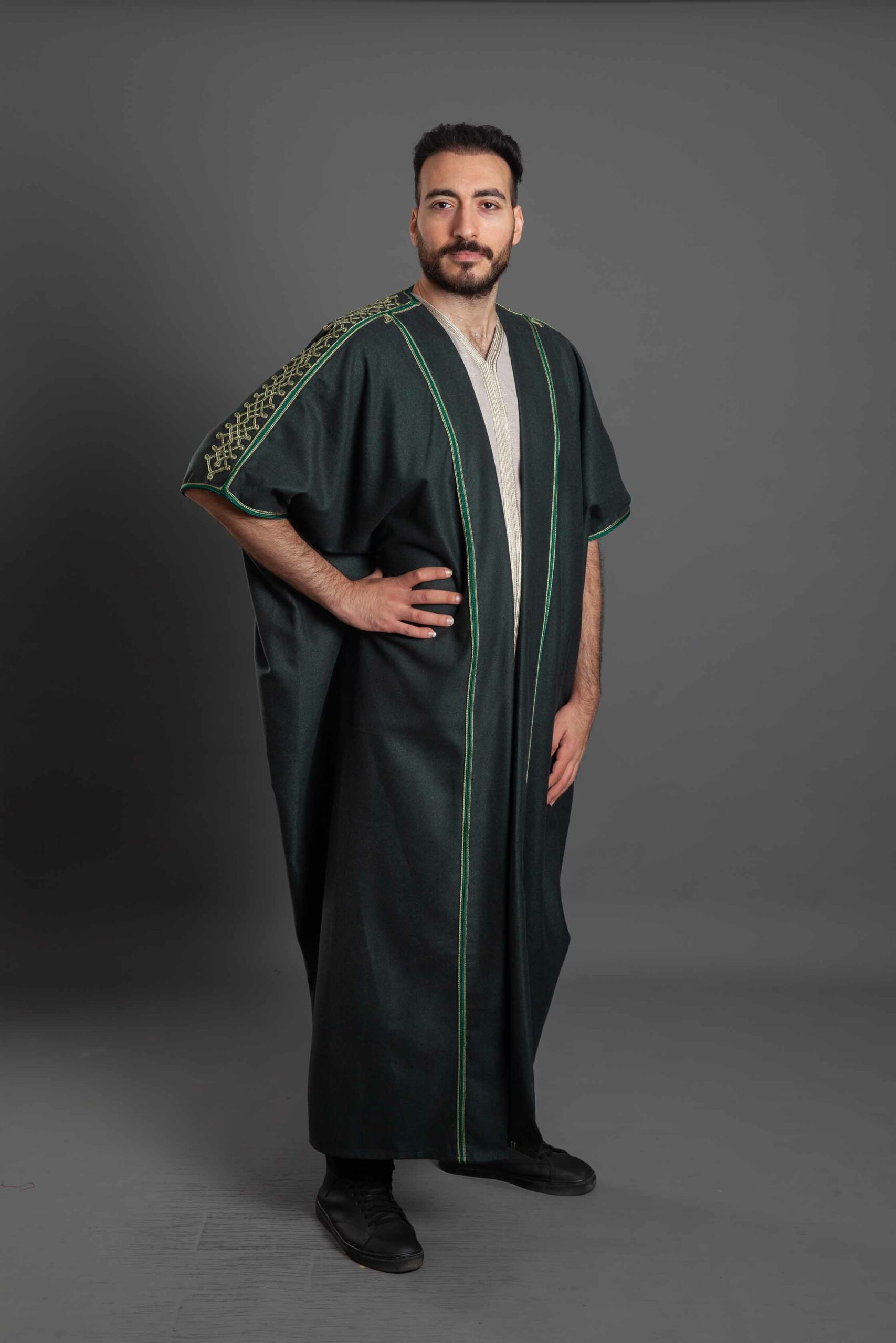 عباية صوف أخضر بتطريز القطان