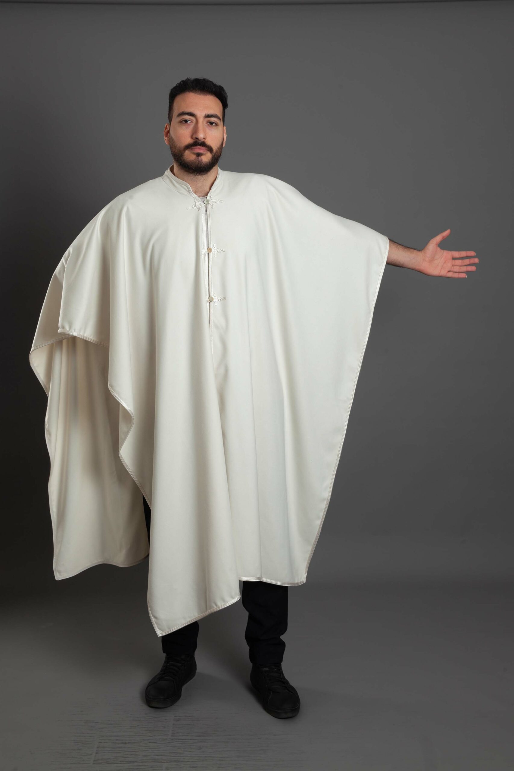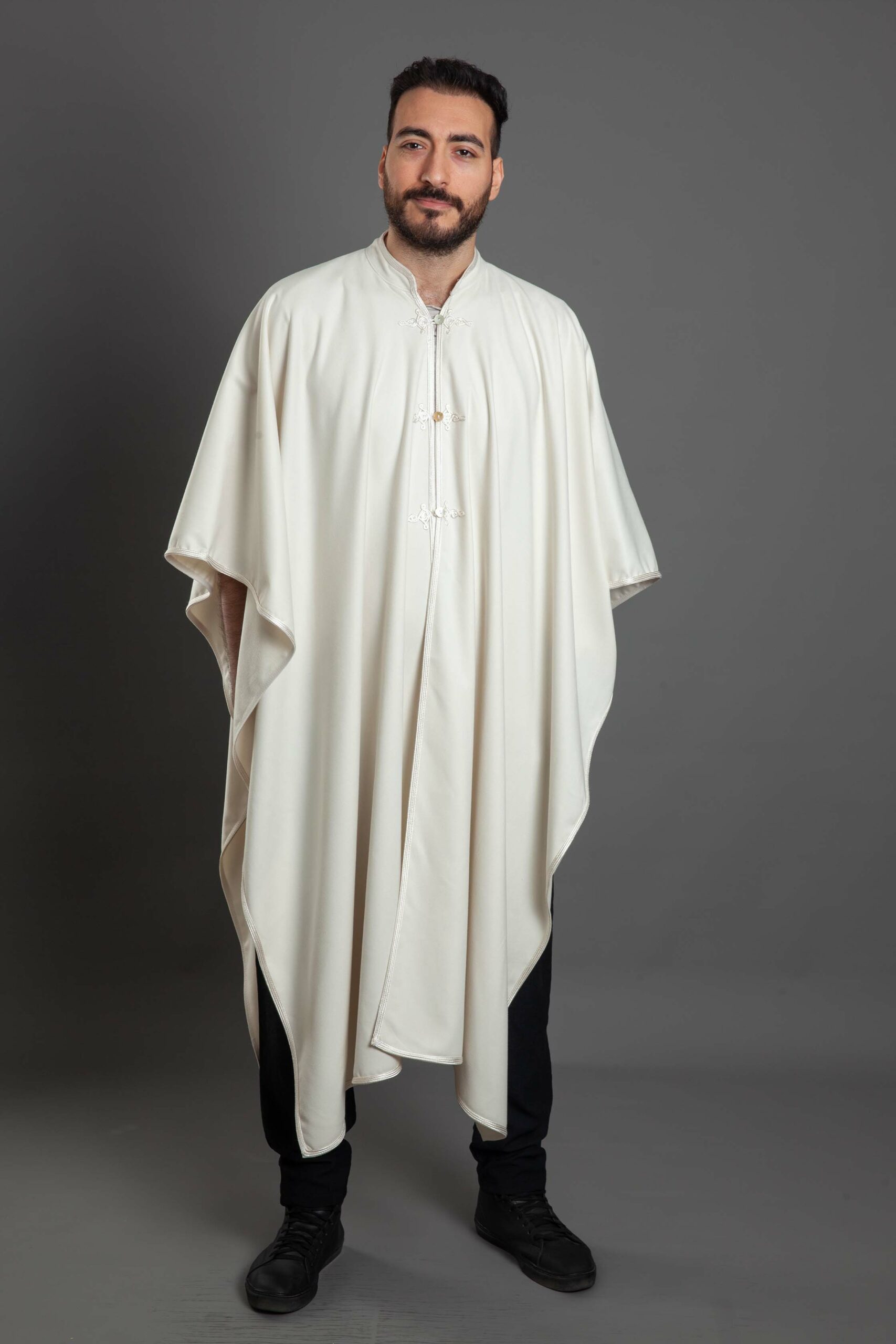 Azmy off-white English wool poncho with off-white embroidery – size 2