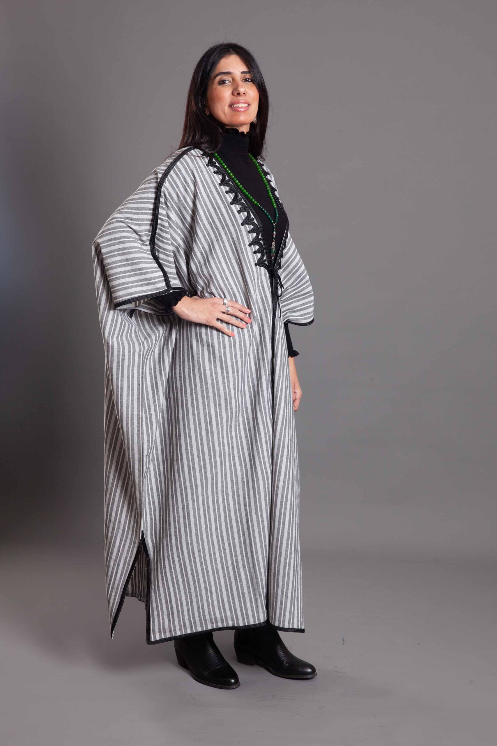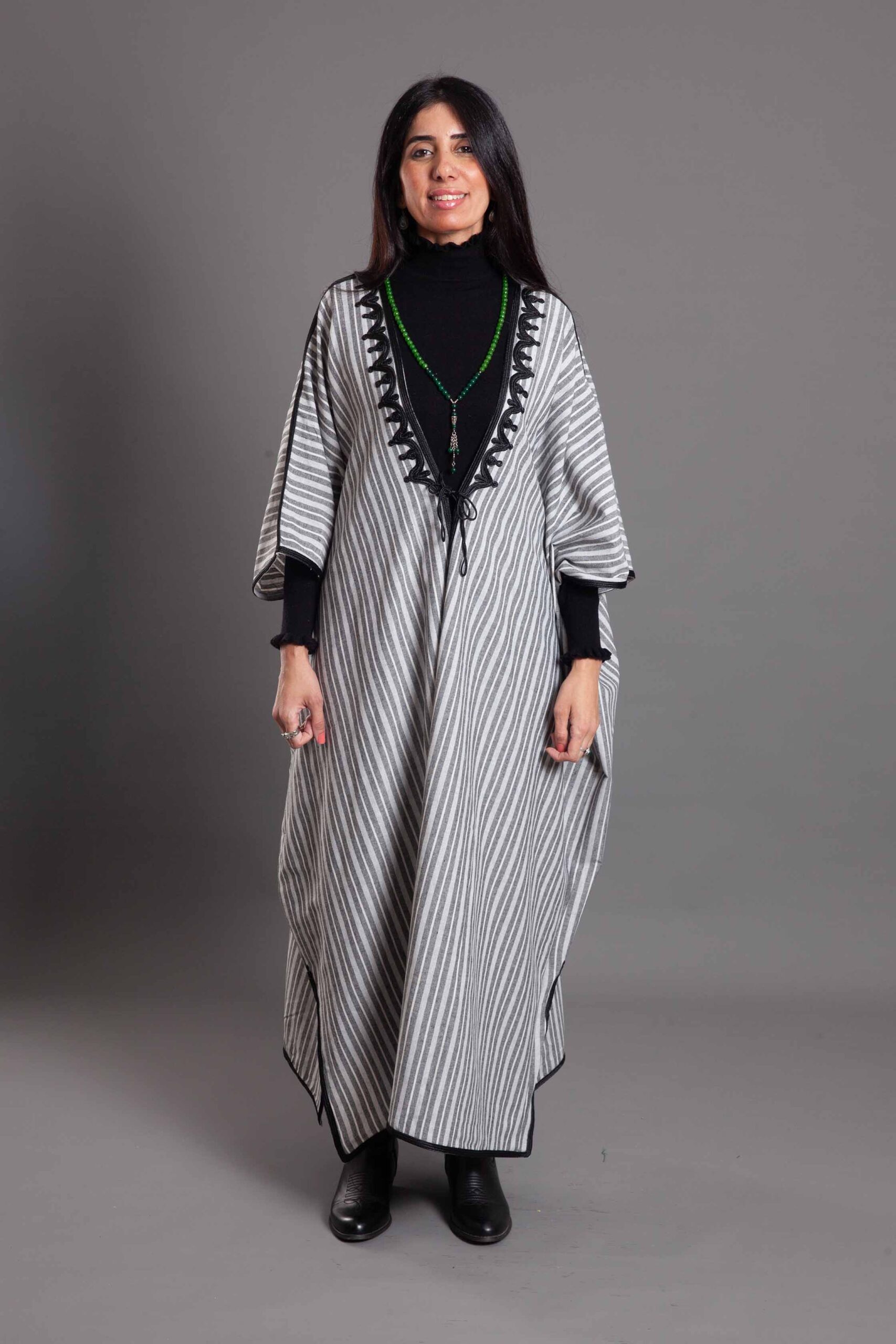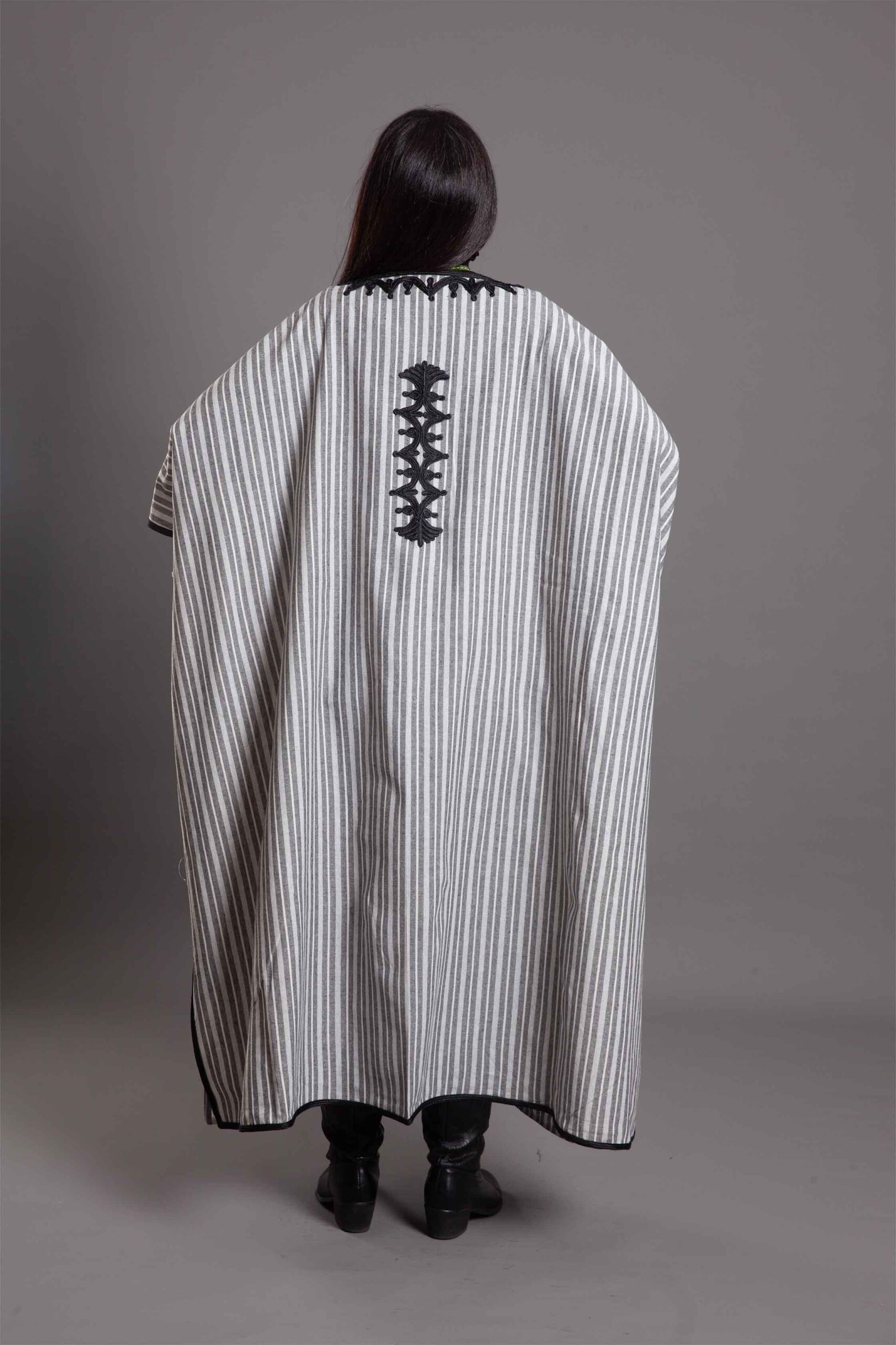 Grey stripped linen with black embroidery abaya