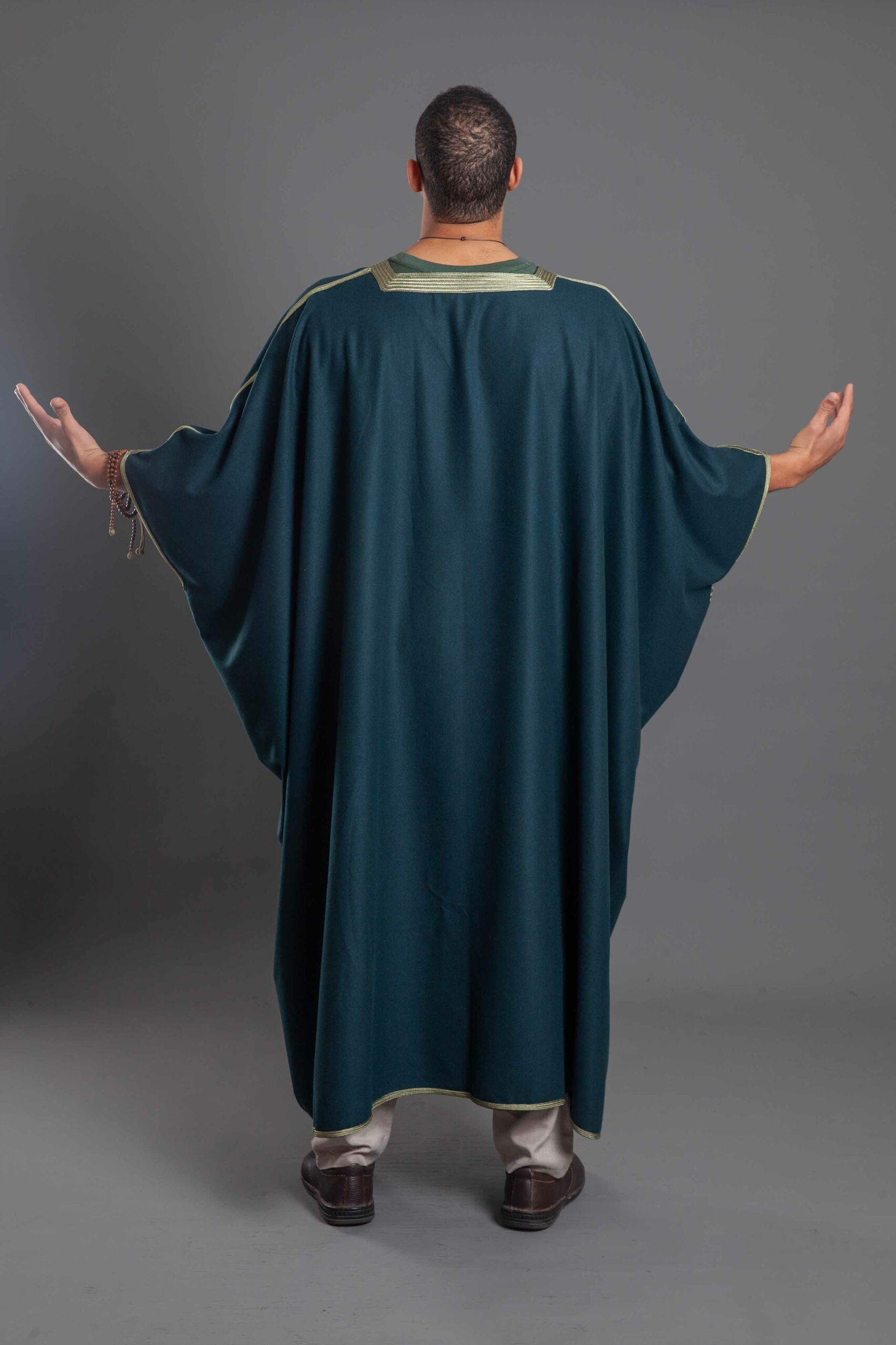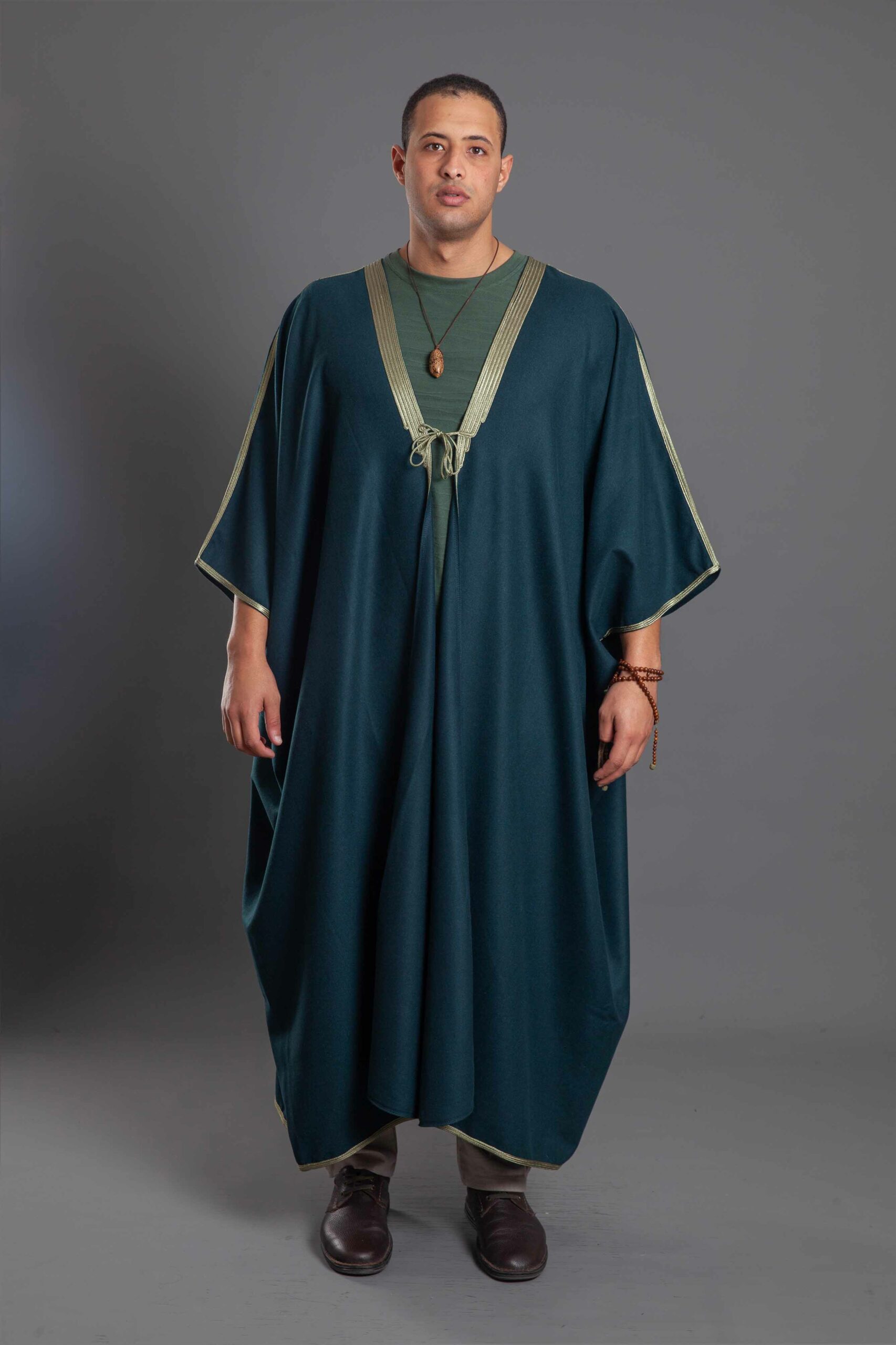 Majestic Drape: Features an expansive “Bisht” style cut that provides full coverage while maintaining an air of high-end fashion.