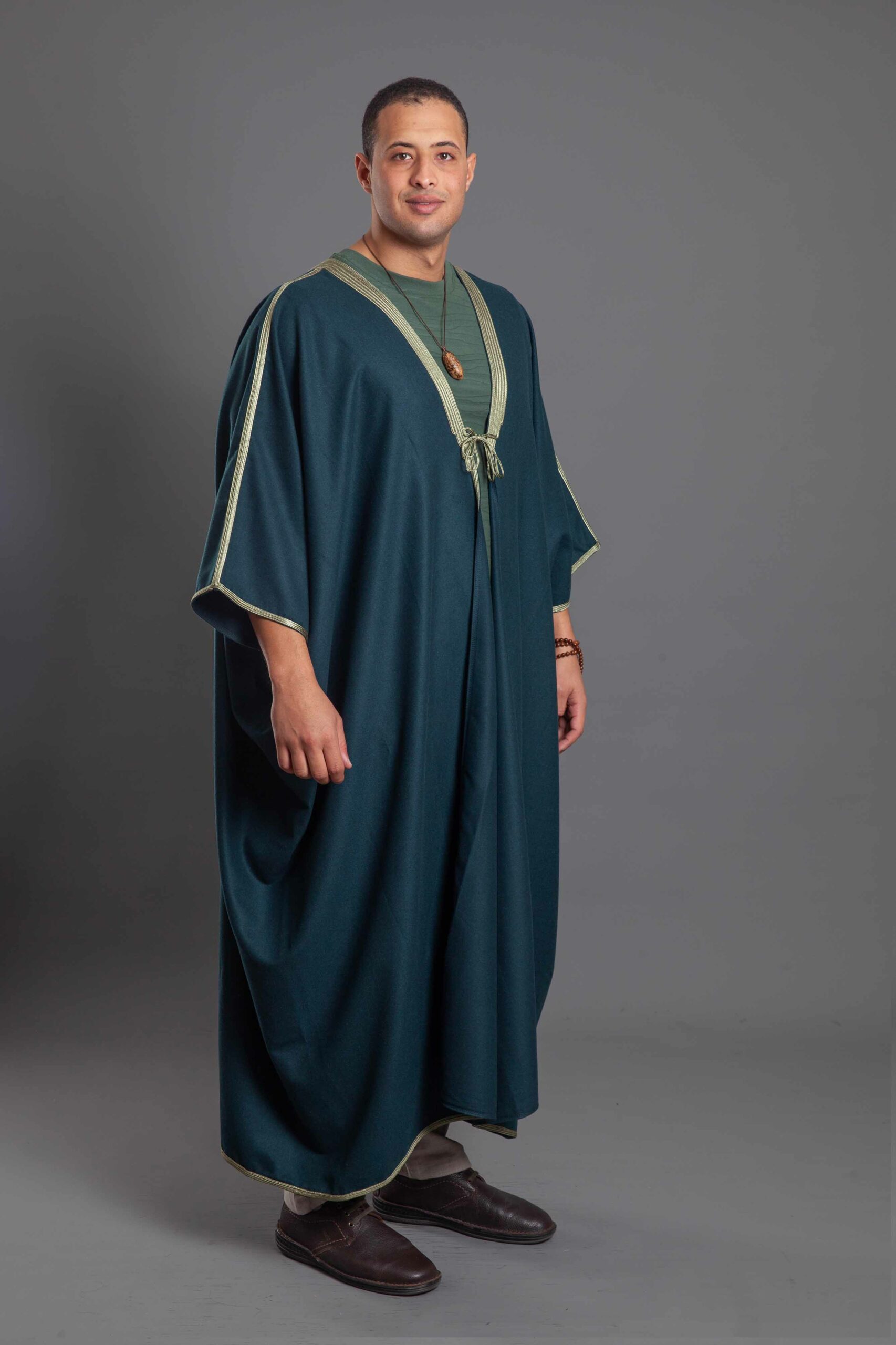 Experience the regal elegance of Egyptian desert fashion with this distinguished Petrol Blue Abaya.
