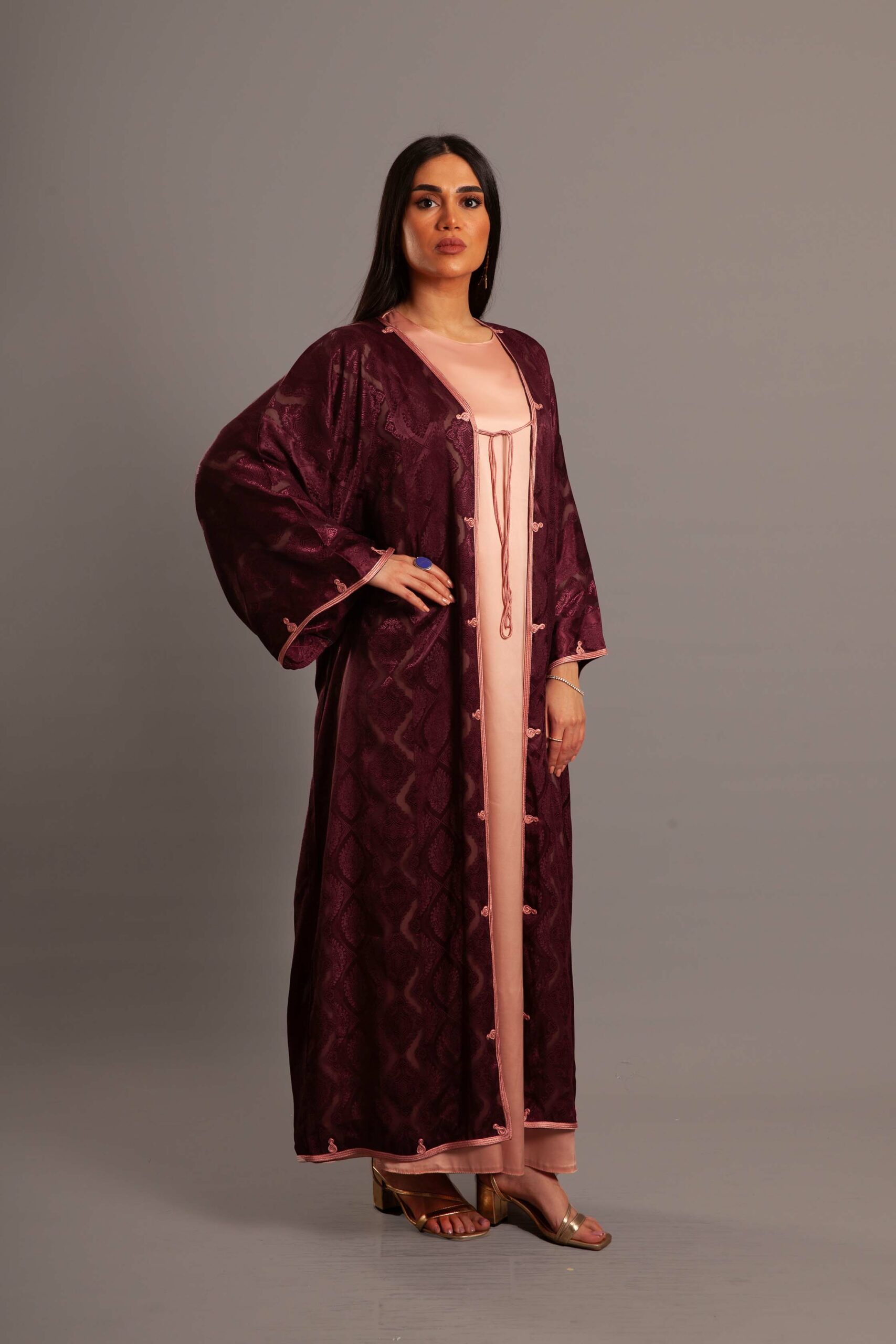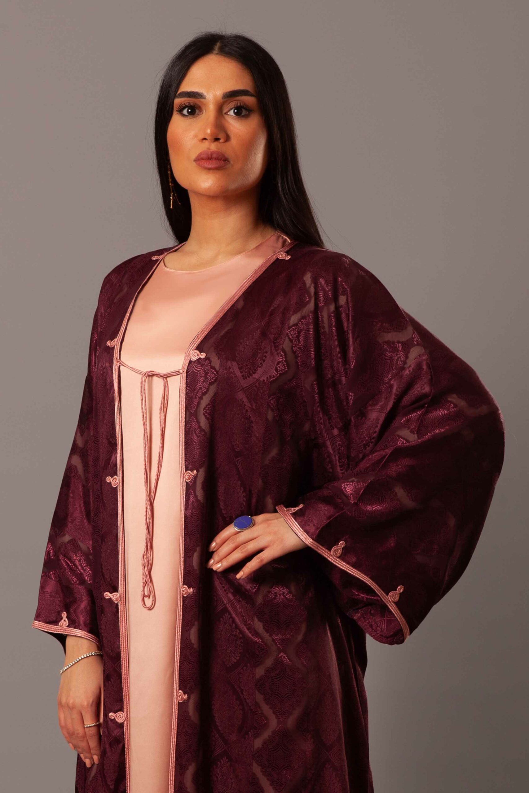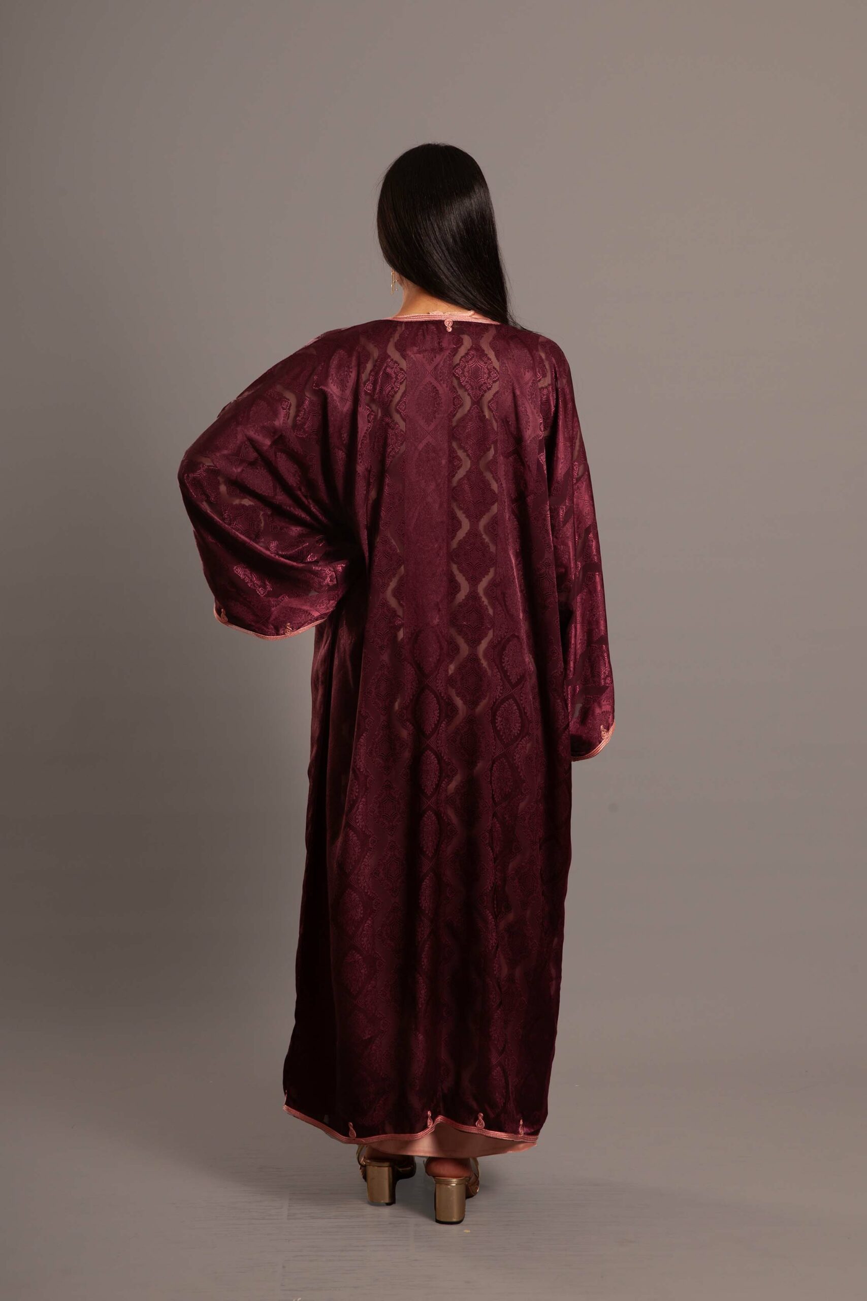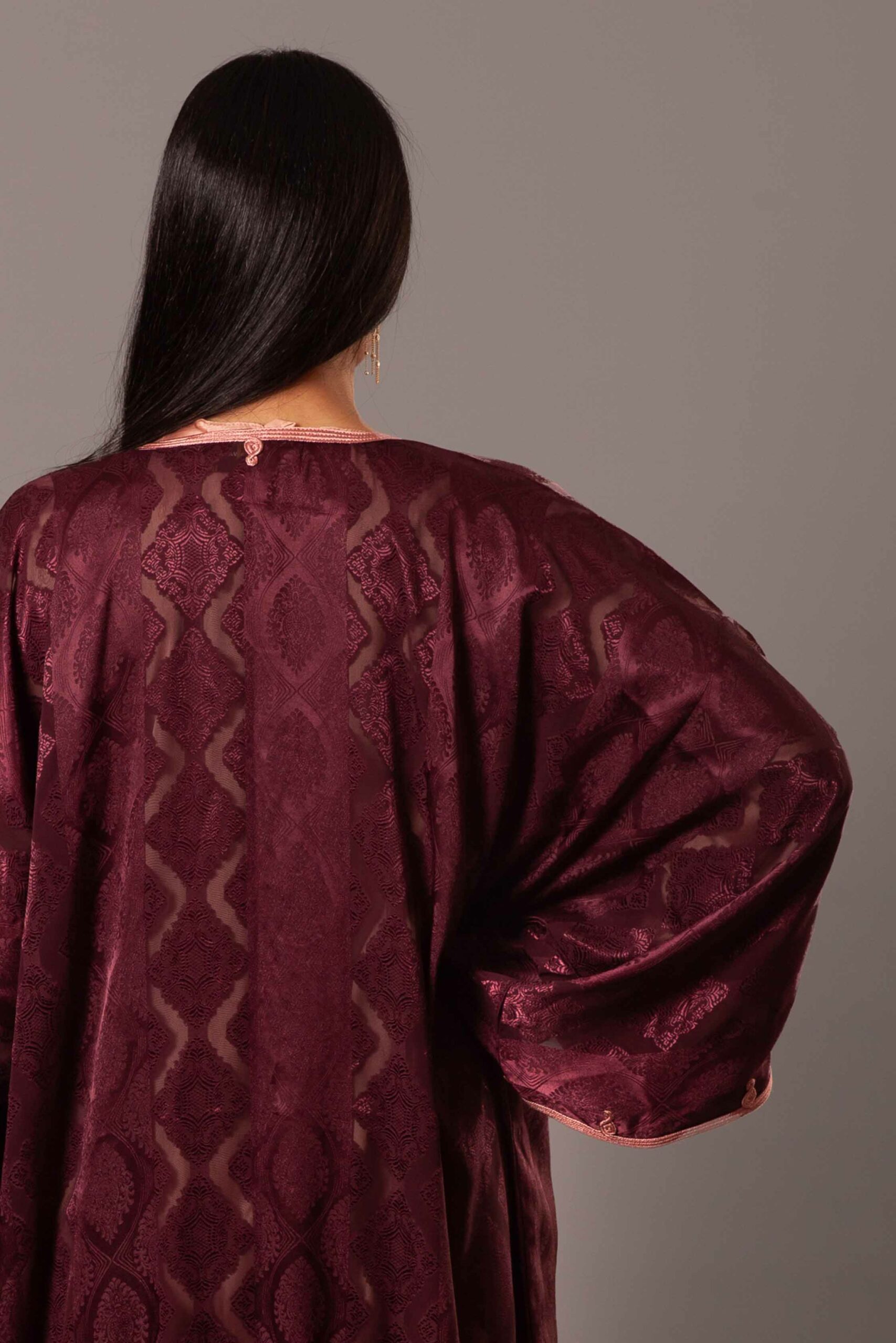 كيمونو فاخر من الساتان الحريري  ، تتزيّن أطرافه بتطريز القطان التقليدي من مصر.