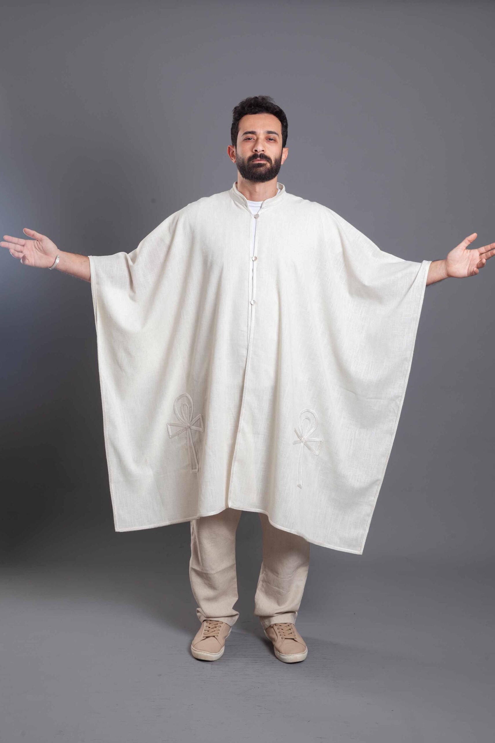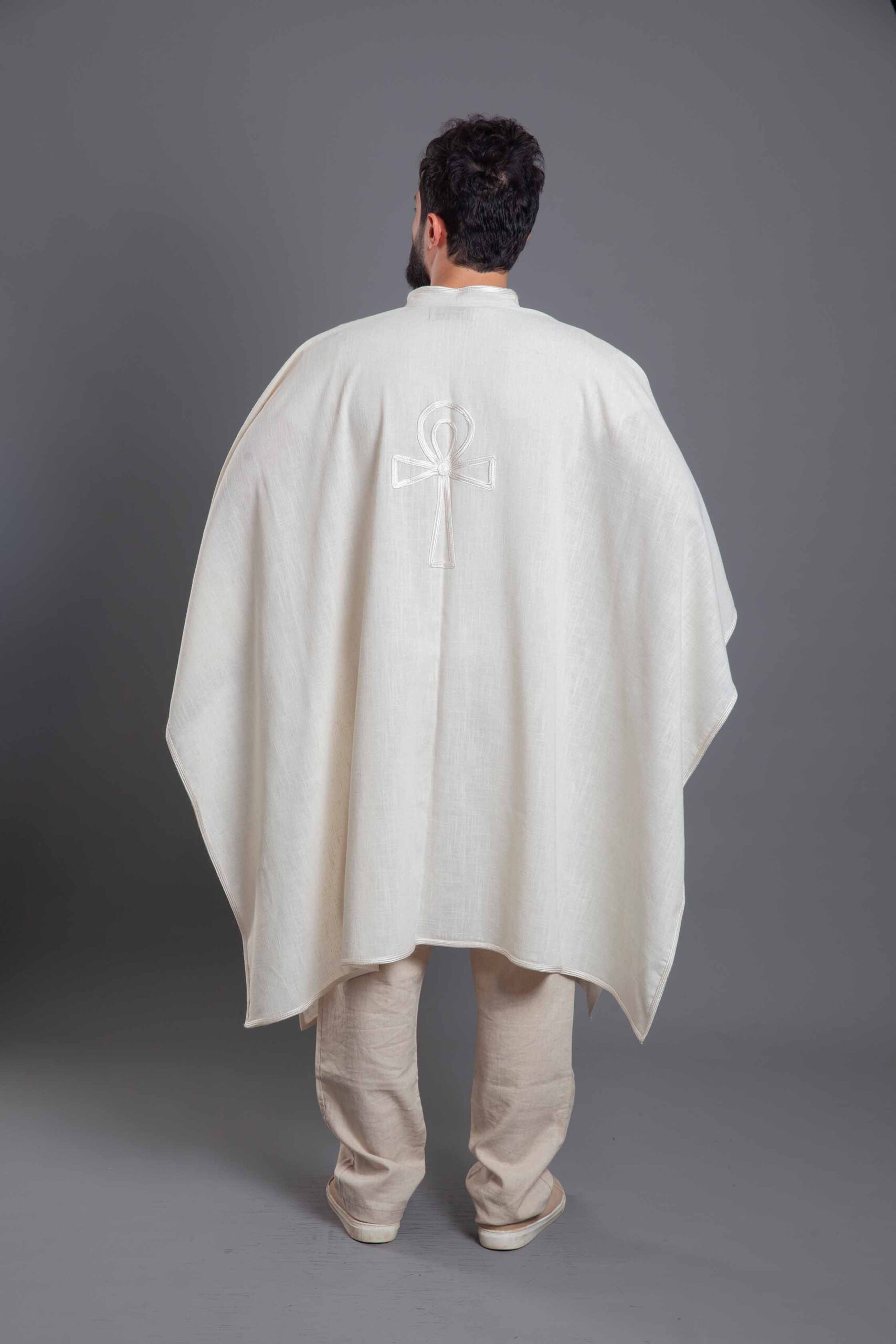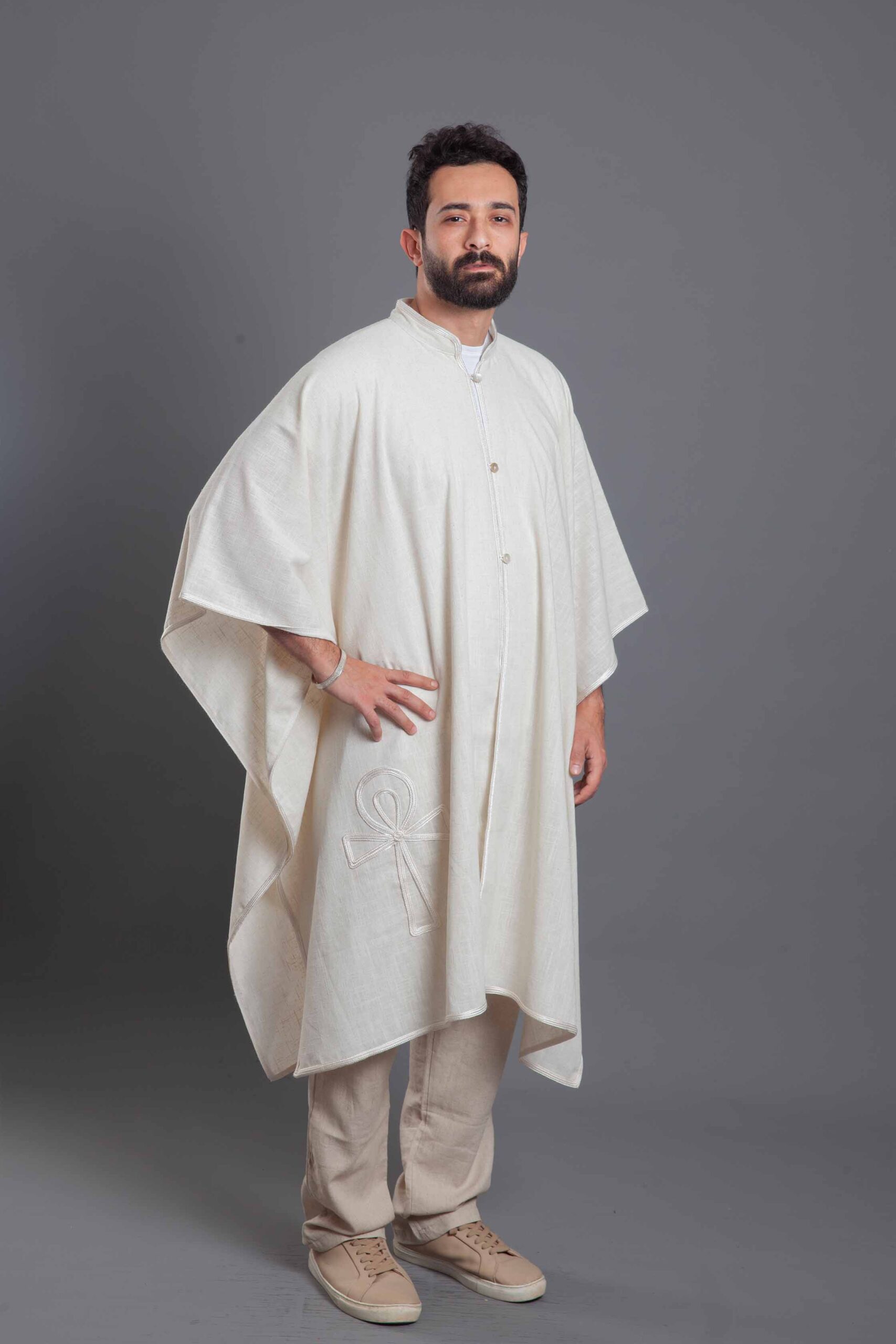 Pure linen off-white key of life poncho