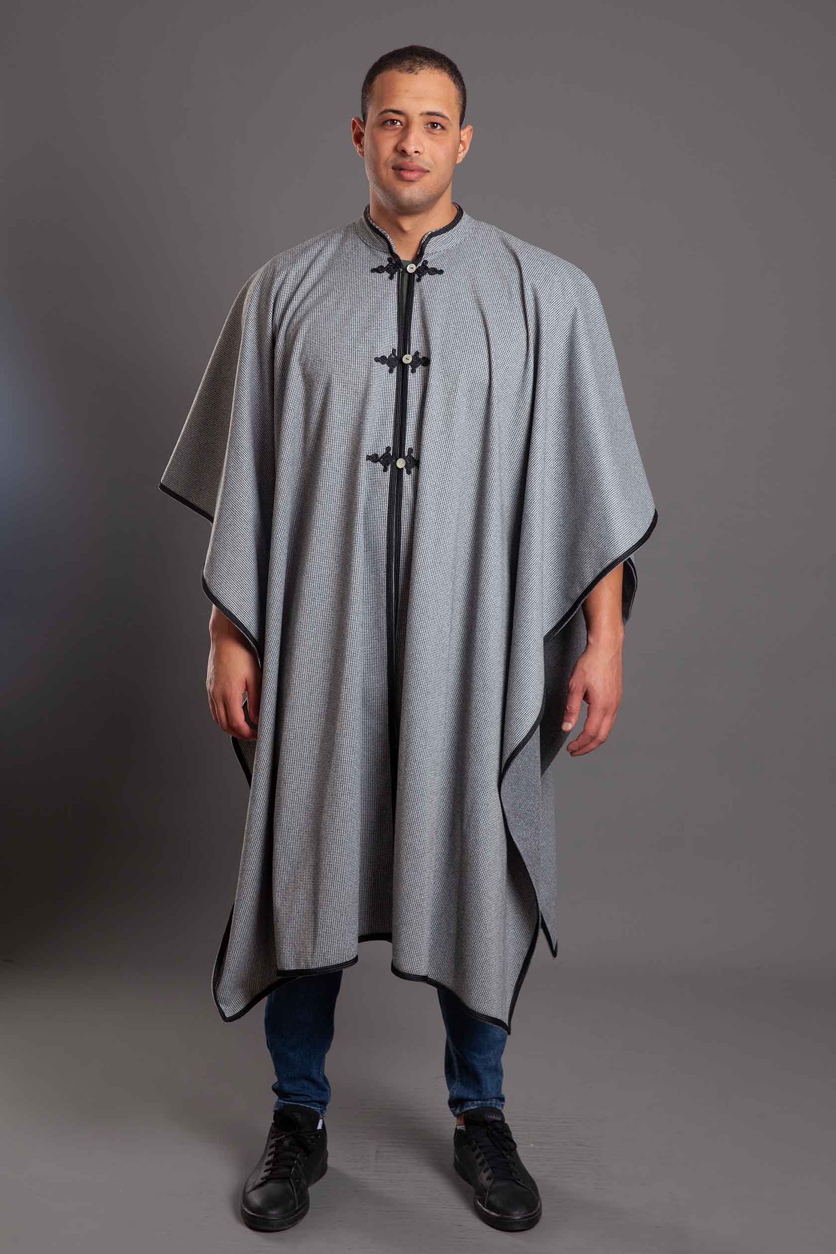 This unisex wool poncho is a tribute to traditional artistry, featuring authentic Kottan embroidery.