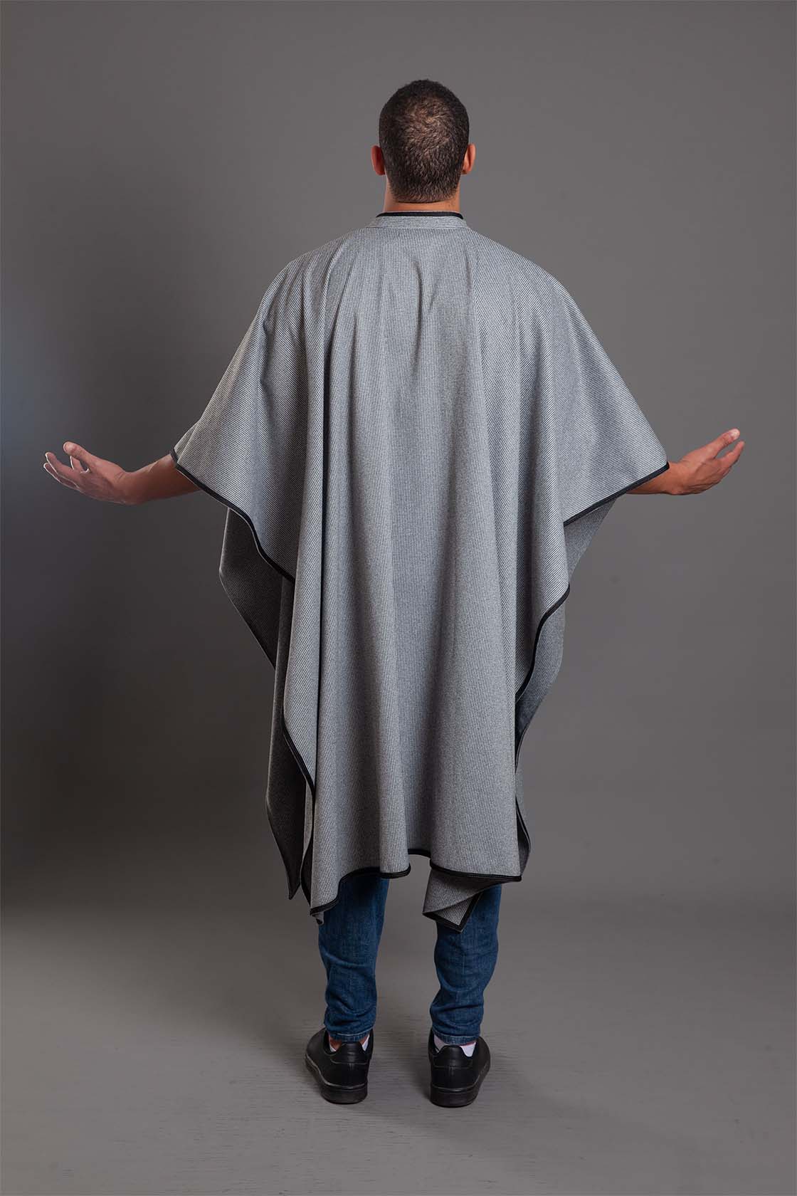 The Grey-Black Embroidered Wool Poncho size 2