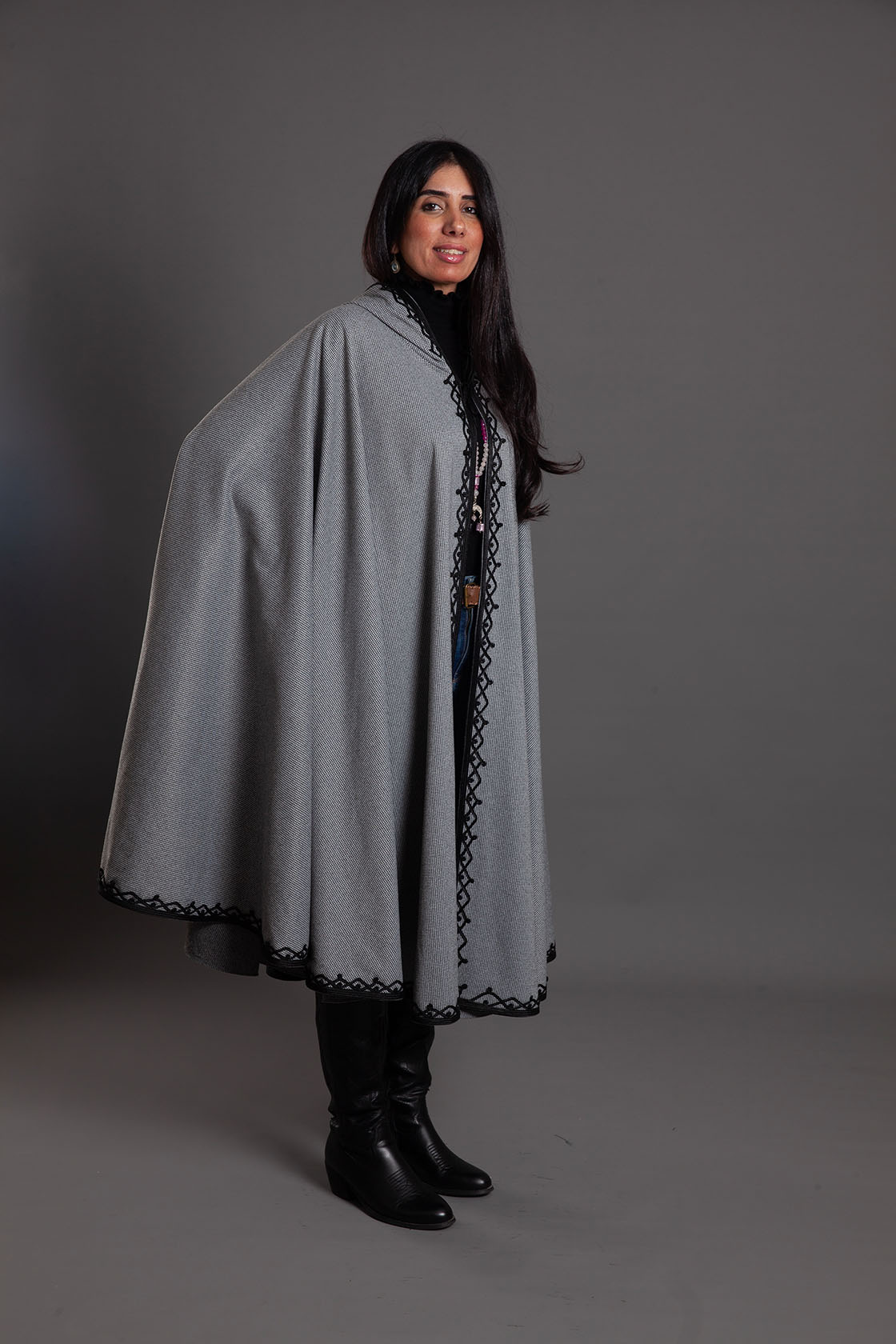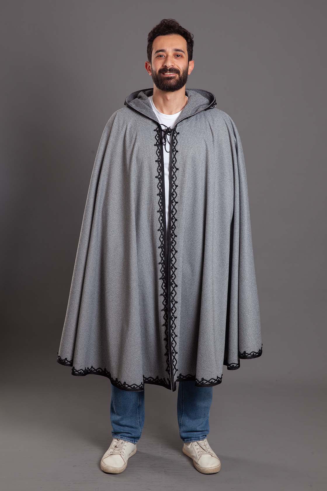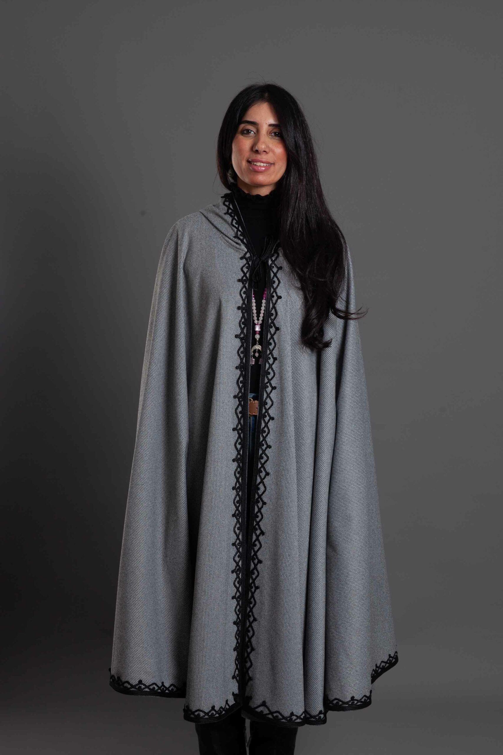 A masterclass in cultural elegance, this open-front Selham is crafted from premium wool to offer warmth and a majestic drape.