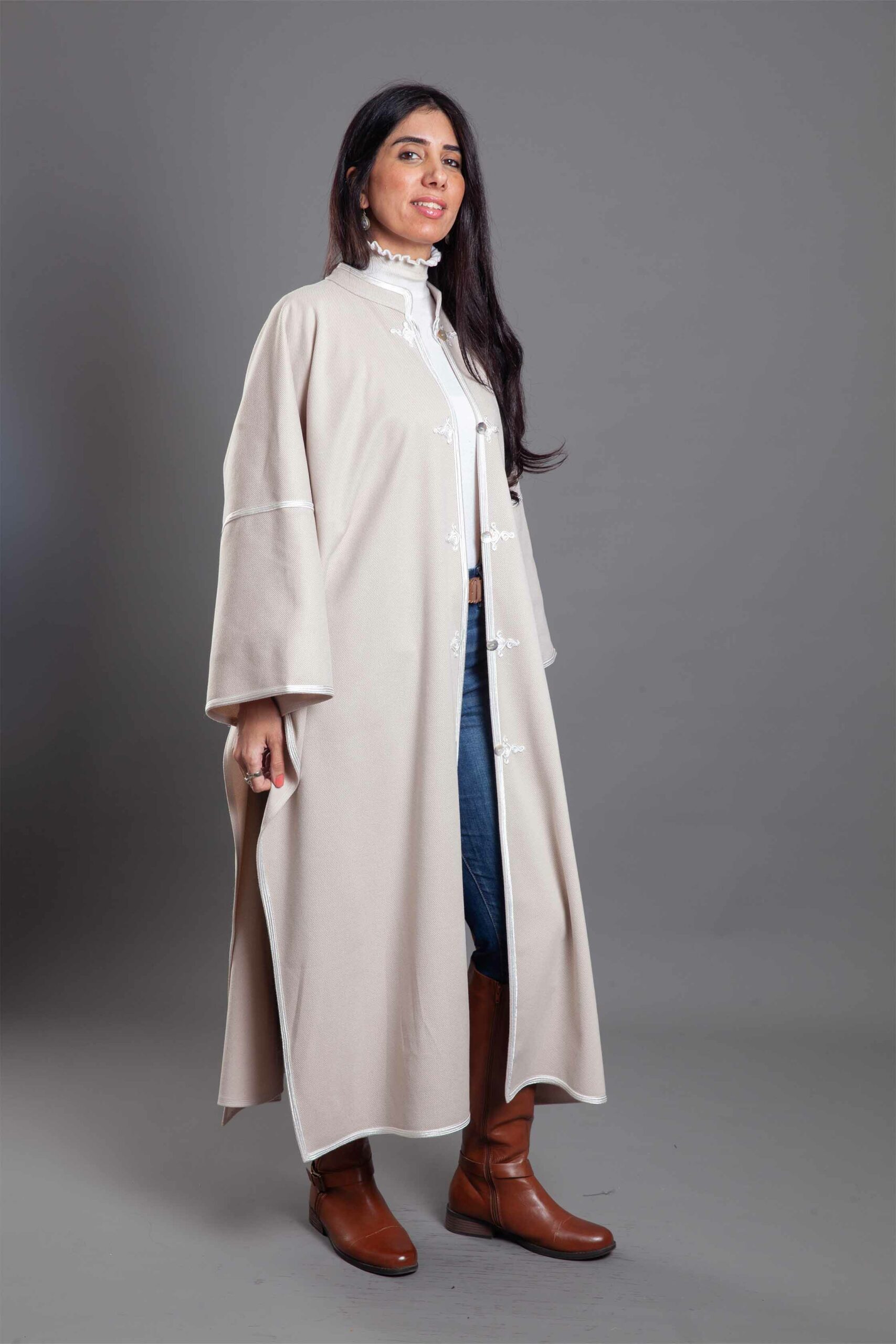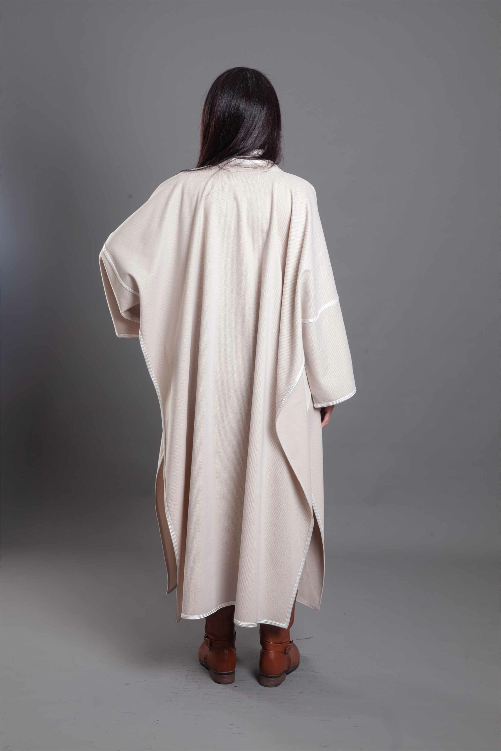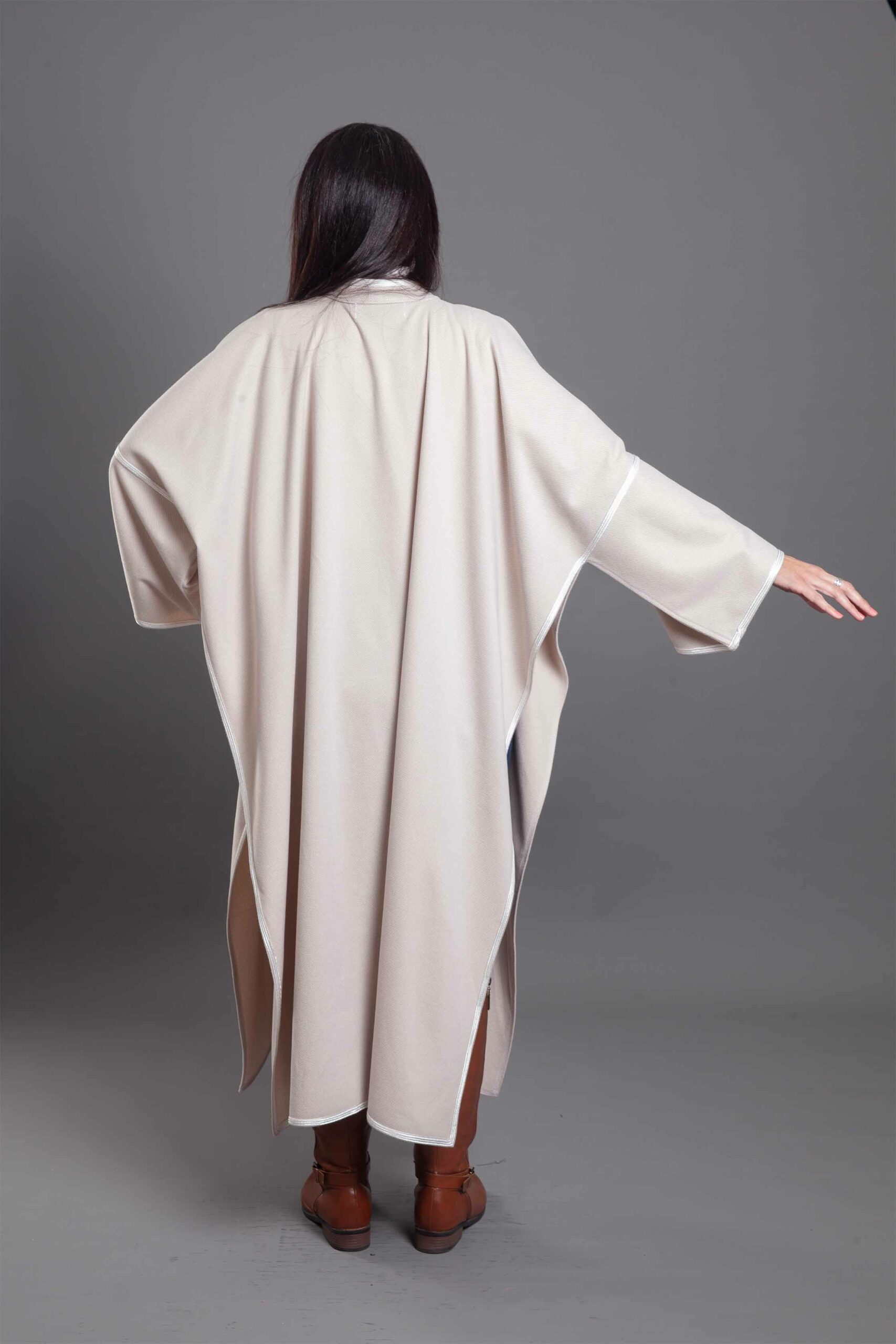 A masterclass in cultural elegance, this open-front Coat-Kimono is crafted from premium wool to offer warmth and a majestic drape.