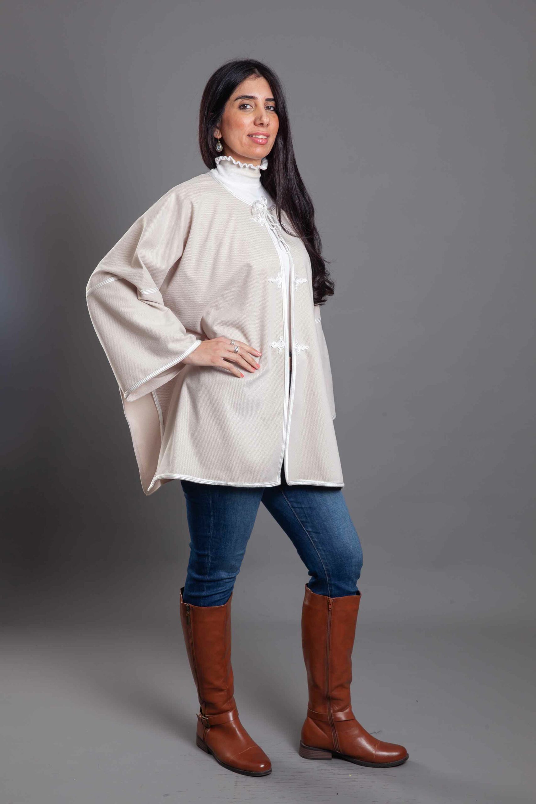 Azmy off-white English wool poncho – size 2