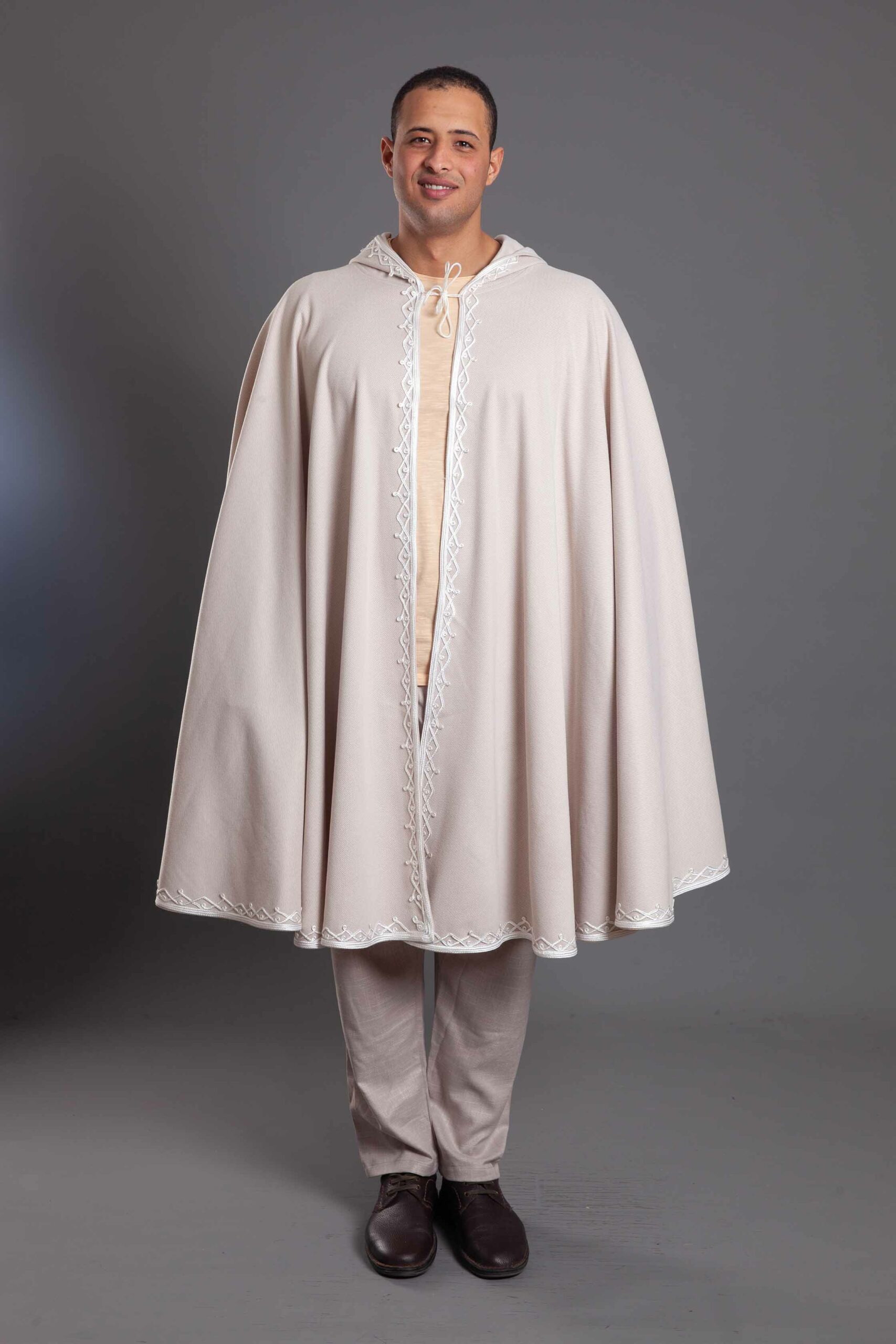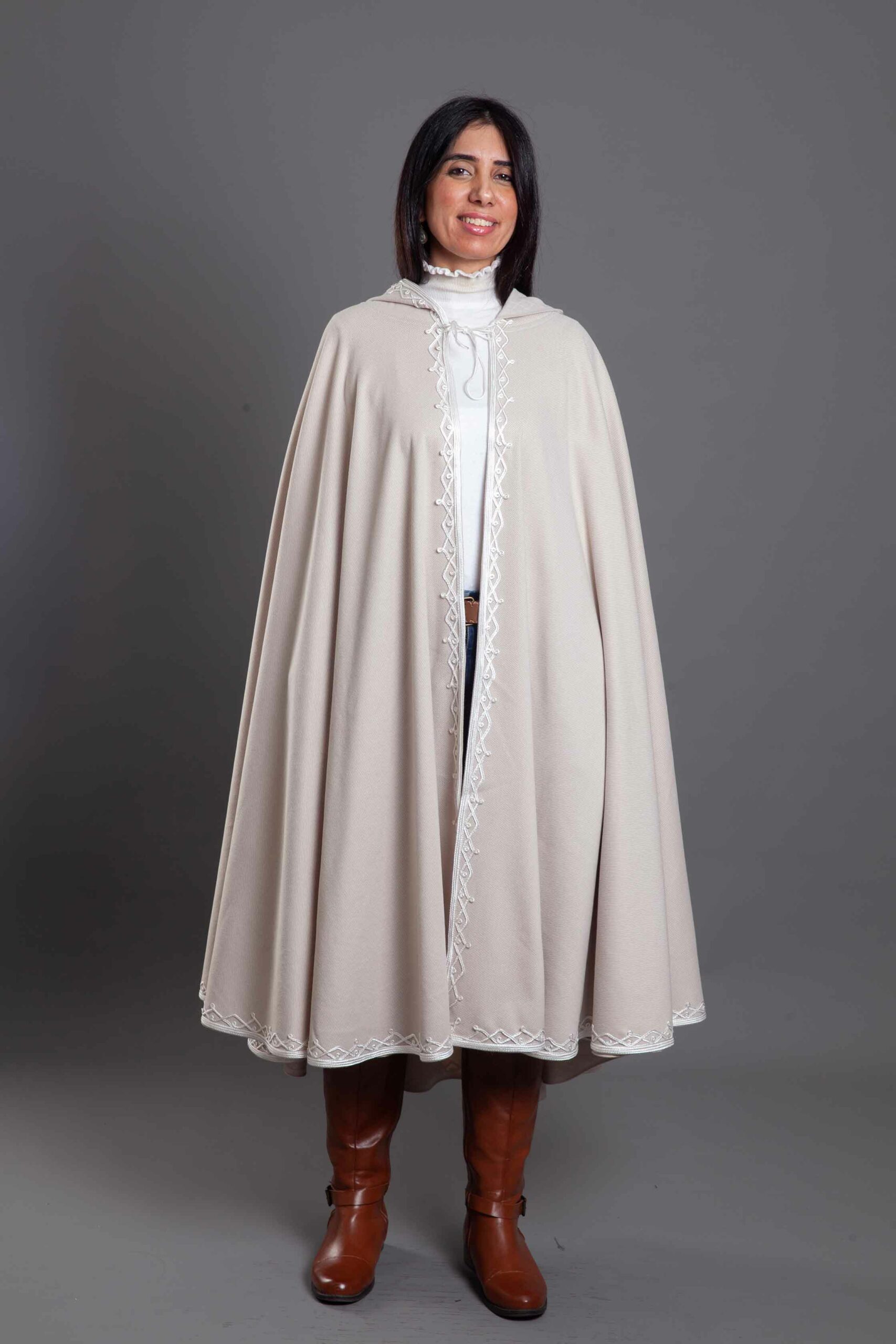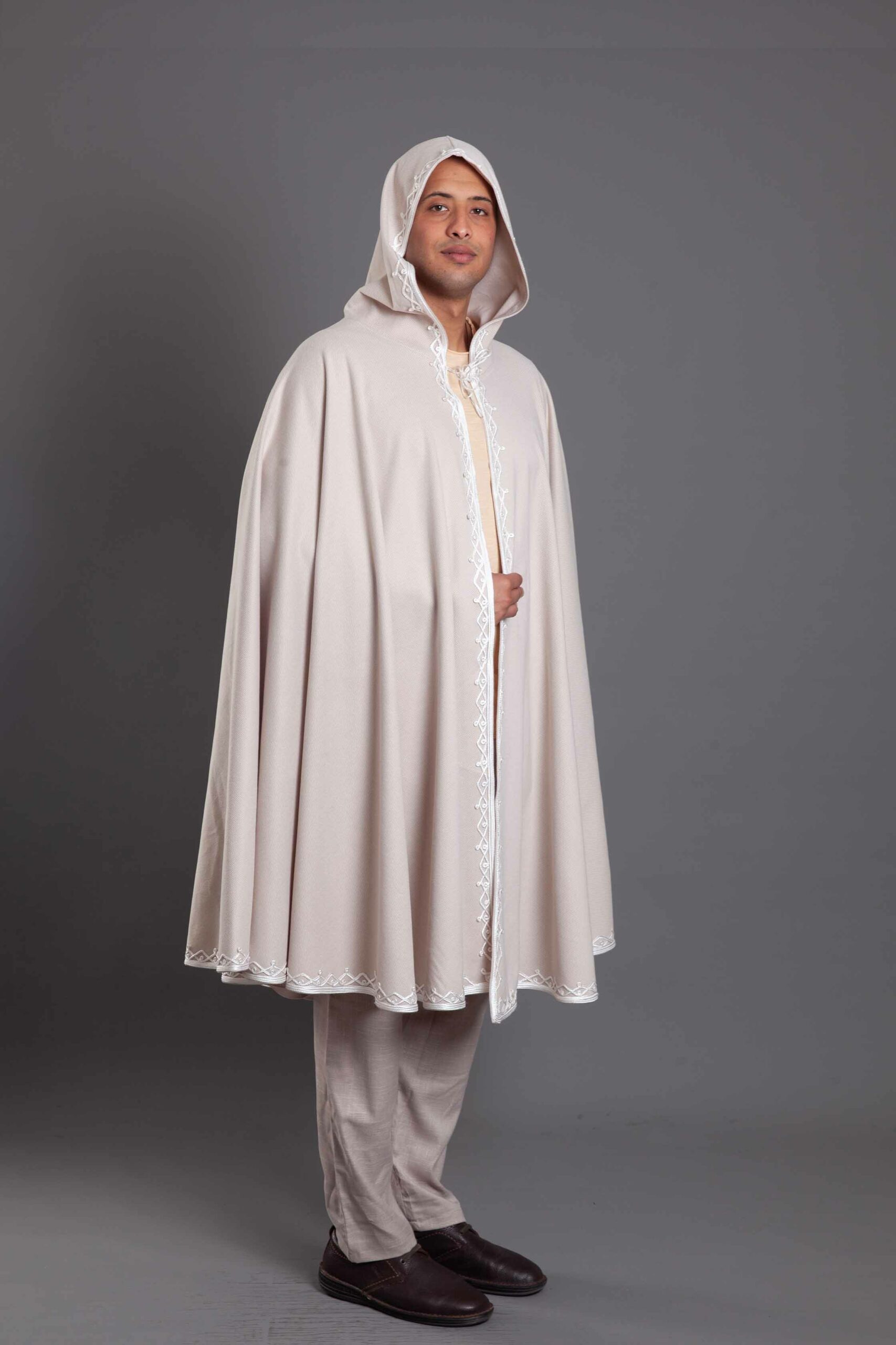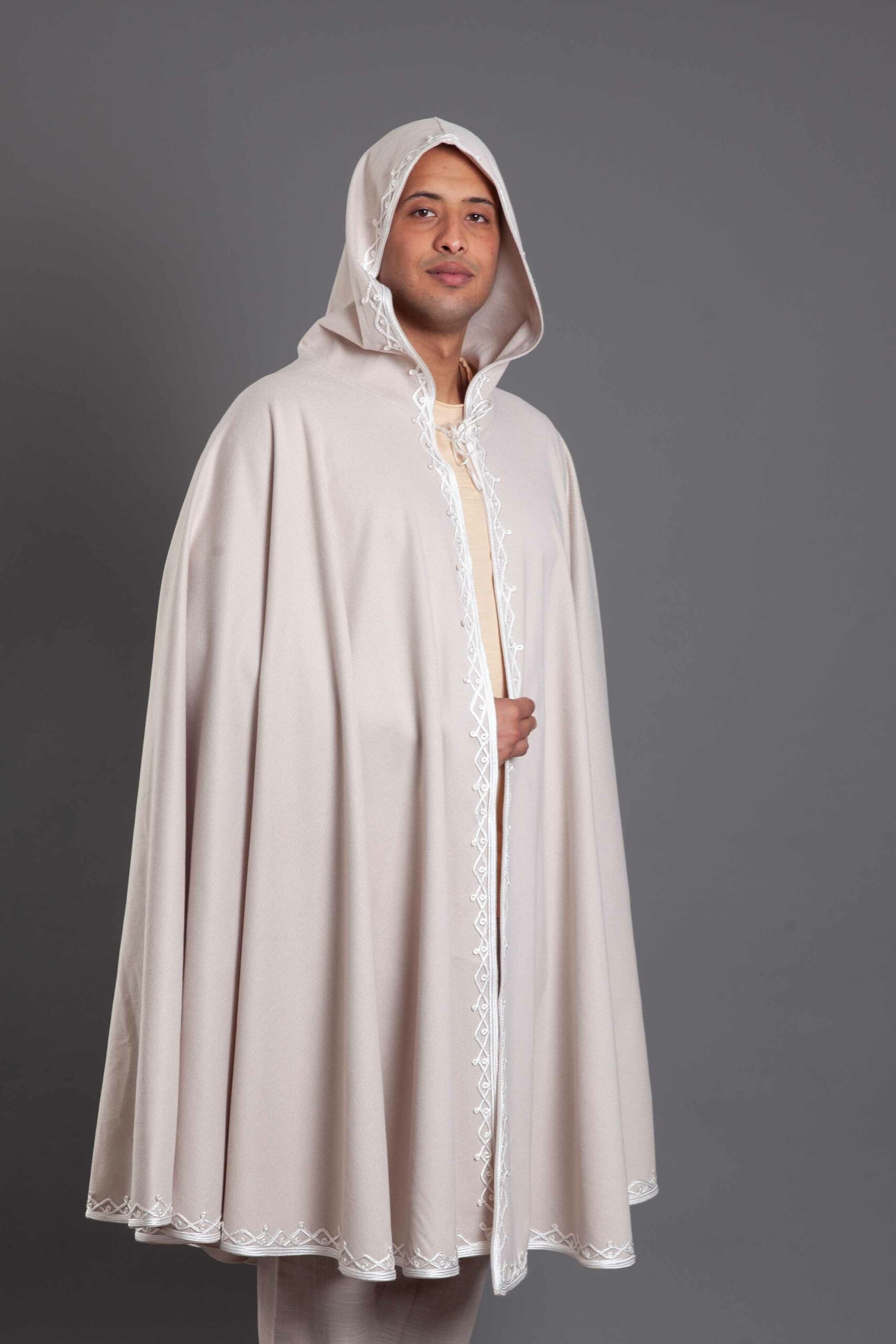A masterclass in cultural elegance, this open-front Selham is crafted from premium wool to offer warmth and a majestic drape.