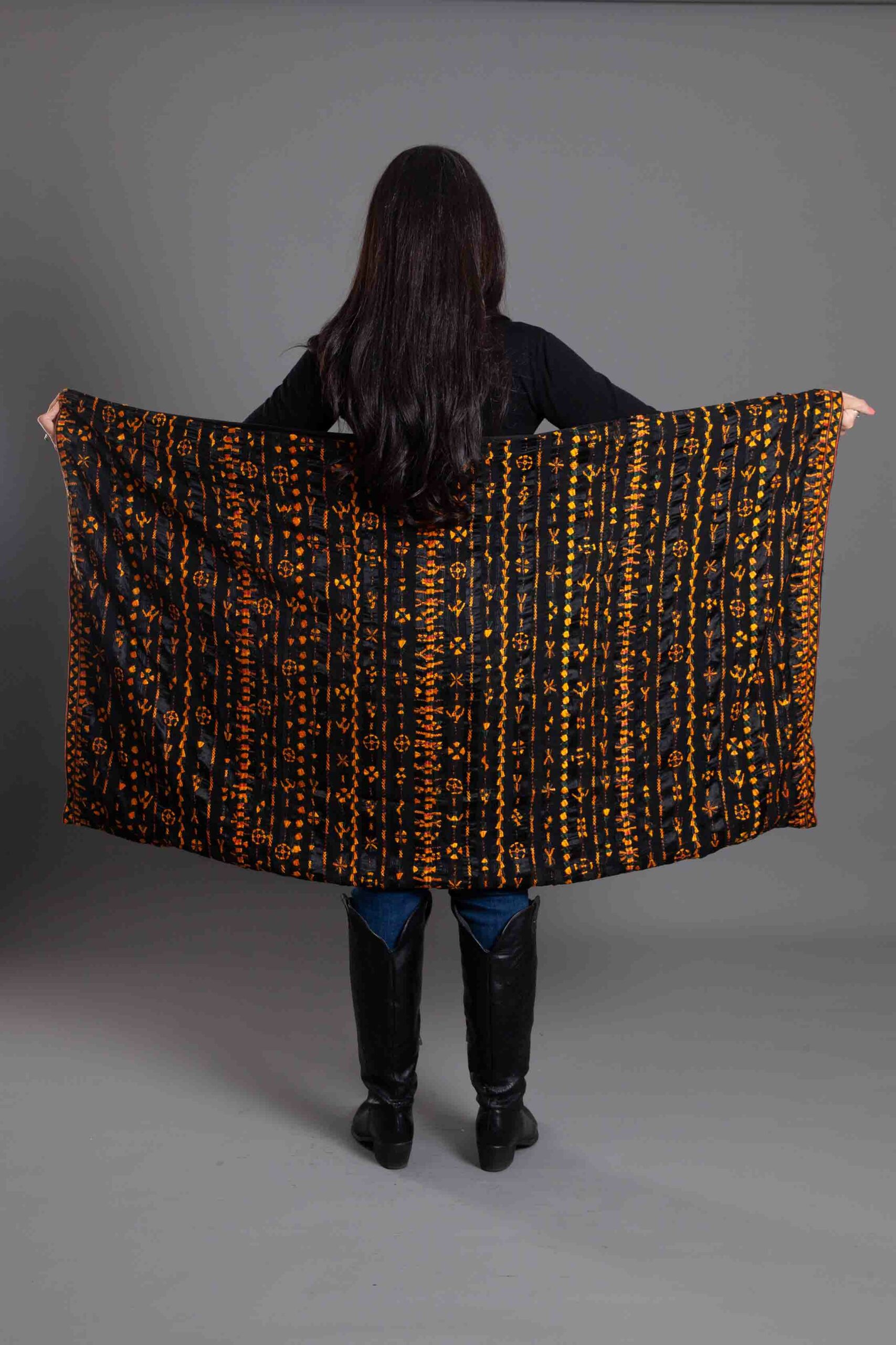 Step into the mystical heritage of the Sahara with this authentic Siwan Shawl. Meticulously hand-embroidered by the women of the Siwa Oasis in Egypt, this piece is a rare example of Amazigh (Berber) artistry. The striking contrast of vibrant silk threads against a deep black base reflects the soul of the desert and centuries of tribal tradition.