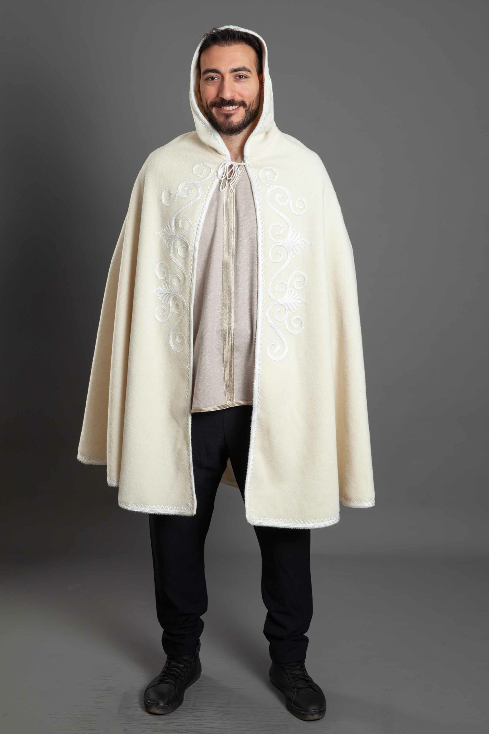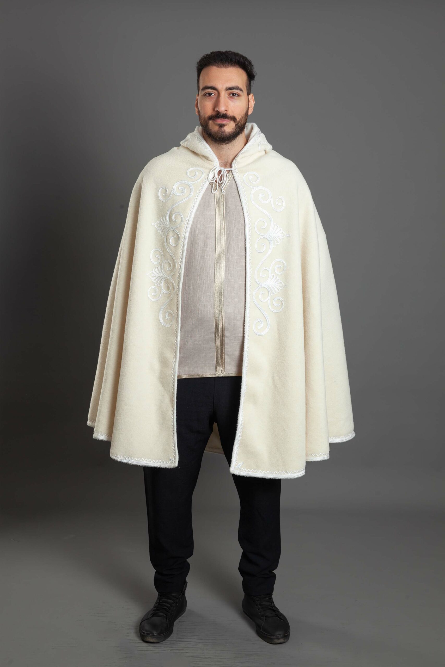 مصنوع من أجود أنواع الصوف، ينساب بنعومة ليوفر لك دفئًا وراحة لا مثيل لهما، بينما تضيف التطريزات لمسة من الإرث العريق والحرفية الرفيعة.